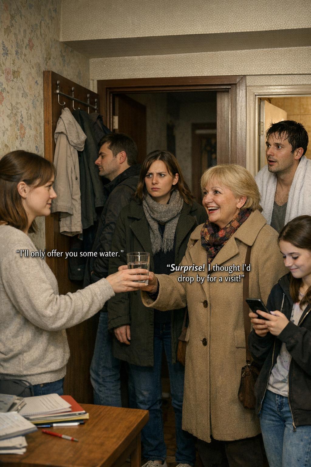 V predsieni nastalo ticho, ktoré bolo takmer hmatateľné. Helena ostala stáť s pootvorenými ústami. Lenka niekoľkokrát nechápavo zažmurkala, akoby si nebola istá, či dobre počula. Róbert sa zrazu začal veľmi sústredene dívať na vzor tapety a Klaudia si potlačila úsmev tým, že sa ešte viac zahĺbila do telefónu.