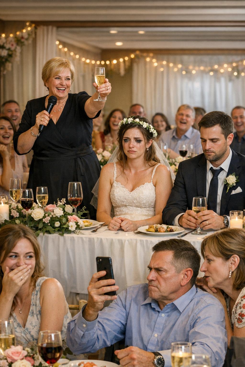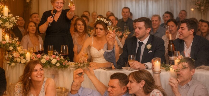 Mladé dievča pri vedľajšom stole sa naklonilo ku kamarátke: „Úbohá nevesta. To je strašné poníženie.“ Druhá bez váhania odvetila: „Natáčaš to? Hoď to na Instagram.“