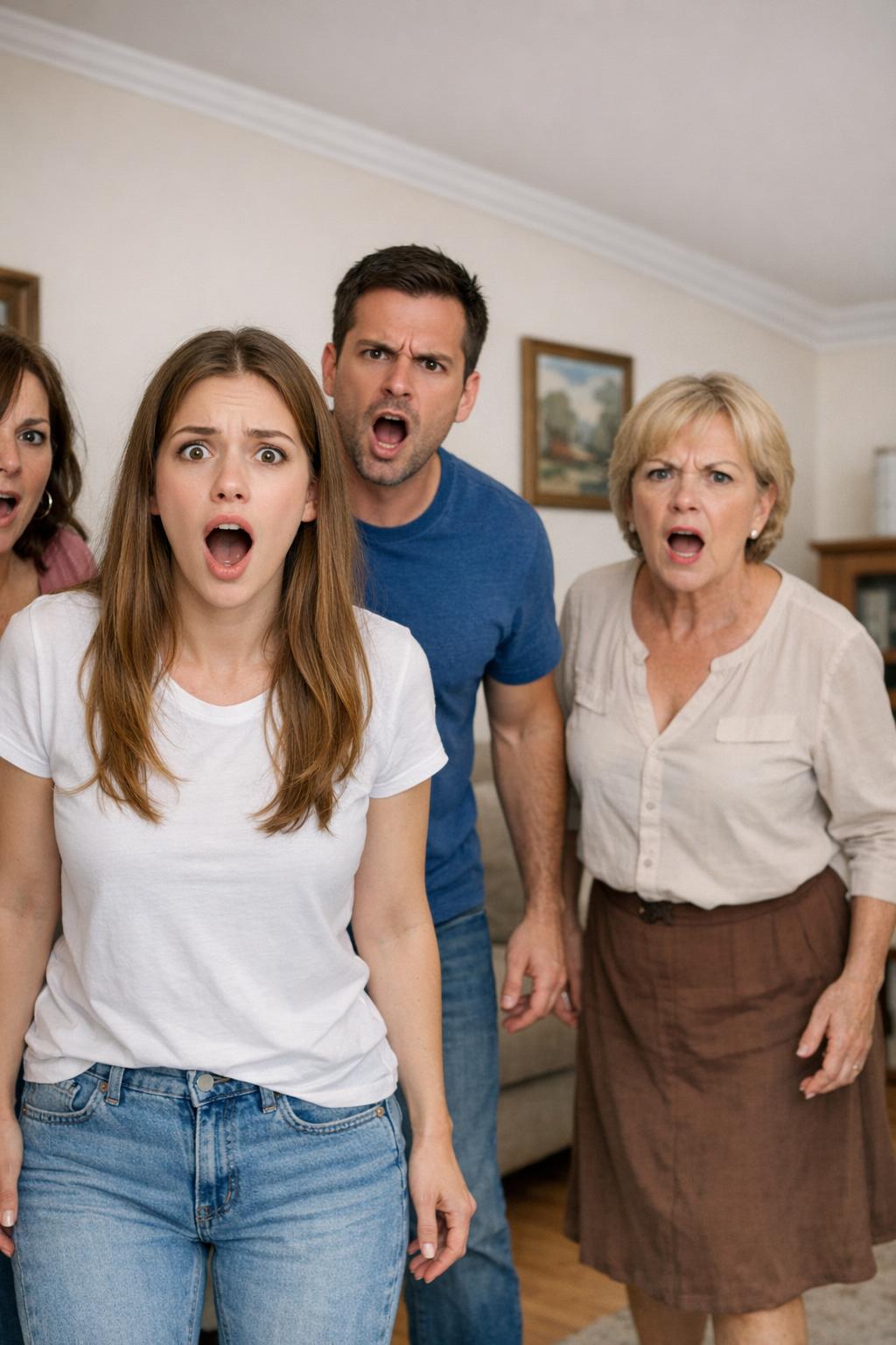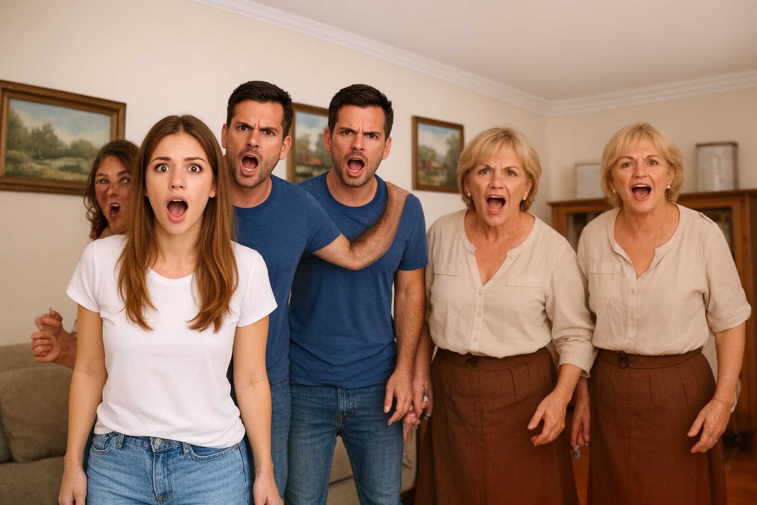Únava však v okamihu zmizla, keď zbadala, kto sa rozvaľuje na ich gauči — v župane, s mokrými vlasmi.