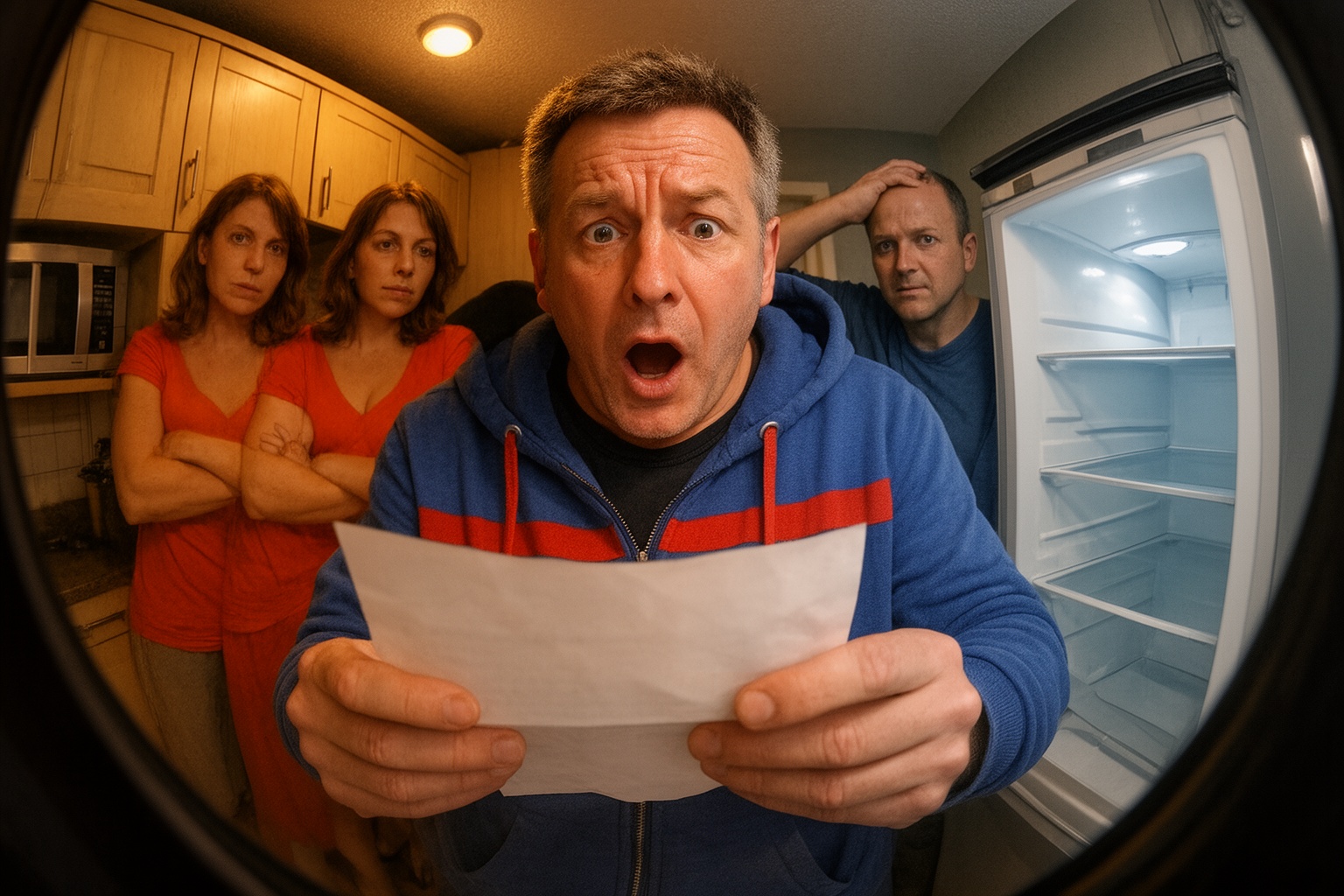 Branislav otvoril chladničku a začal presúvať potraviny. Na hornú policu uložil salámu, pohár kaviáru, kus pečenej šunky aj drahý syr.